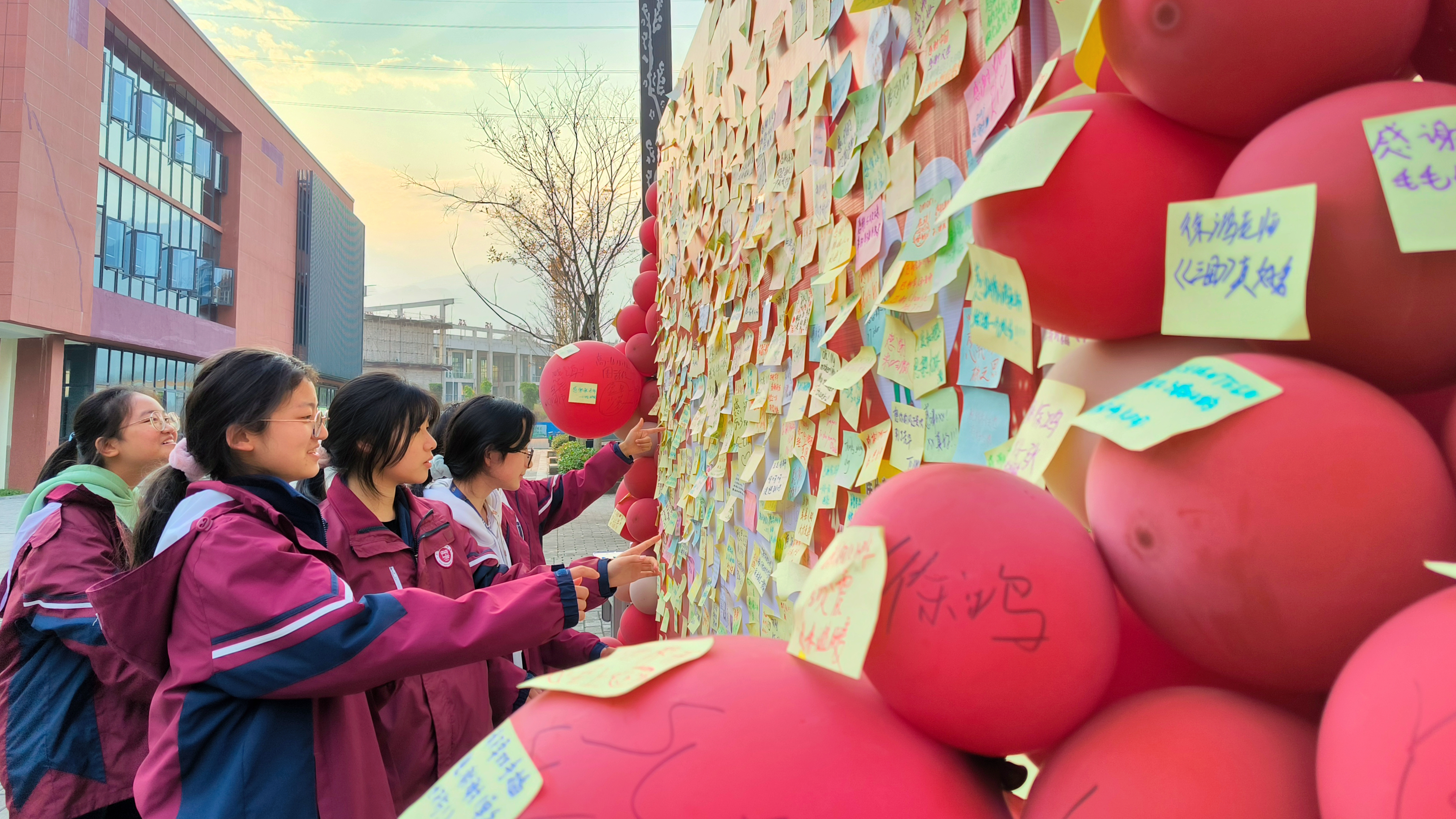 学校在食堂外广场设置“感恩墙”,老师们、同学们纷纷写下自己的感恩箴言,感谢父母的养育、老师的教导、朋友的关怀、同学的帮助等,朴实无华的话语却表达着自己最真挚的情感。