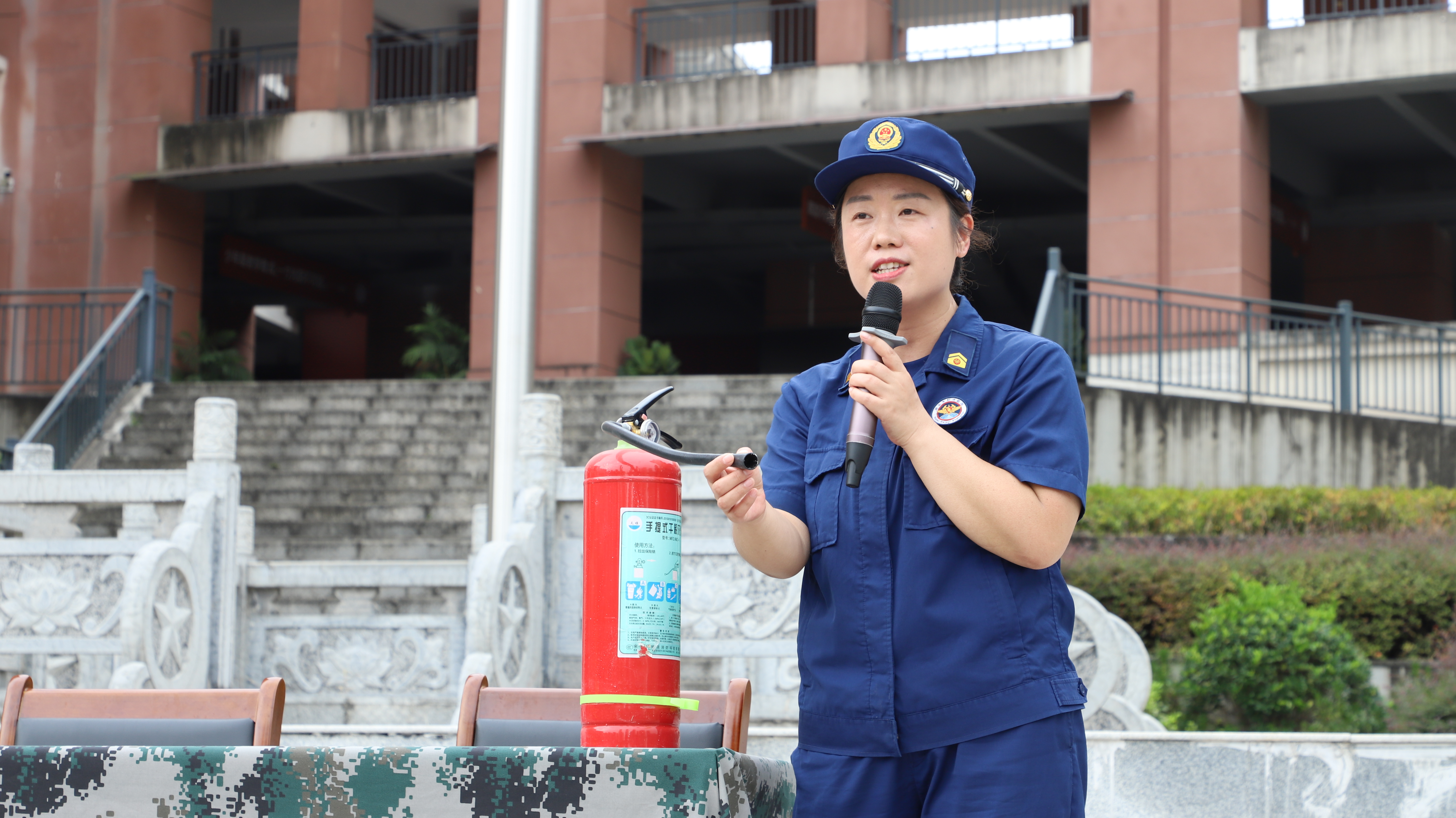 在高二年级疏散演练后,恩施市消防救援大队周华平老师给参训学生进行消防安全知识和消防器材使用讲解,周老师详细介绍了灭火器及防毒面具的使用方法,并组织学生进行灭火模拟演练、防毒面具穿戴及消防逃生帐篷体验。